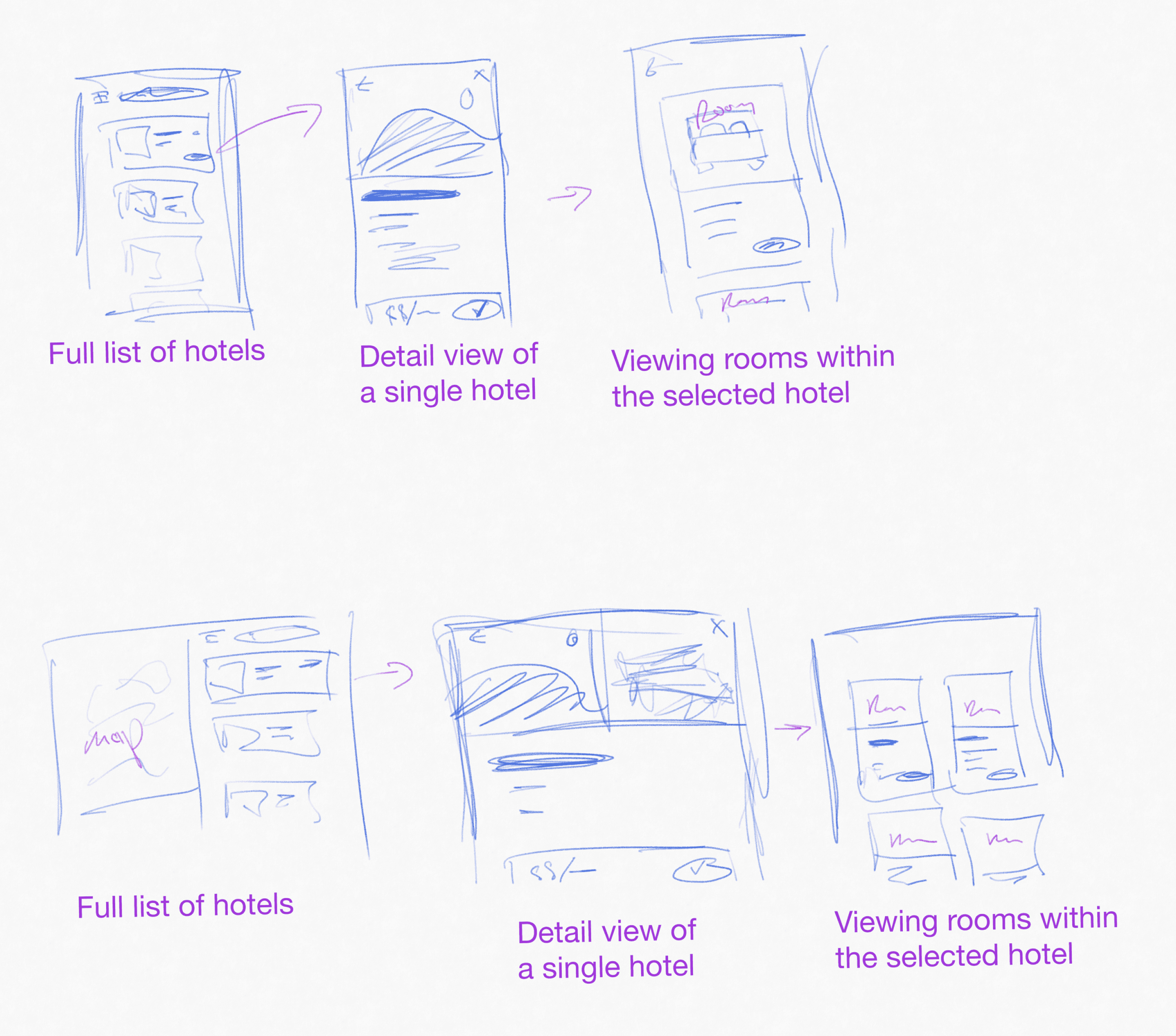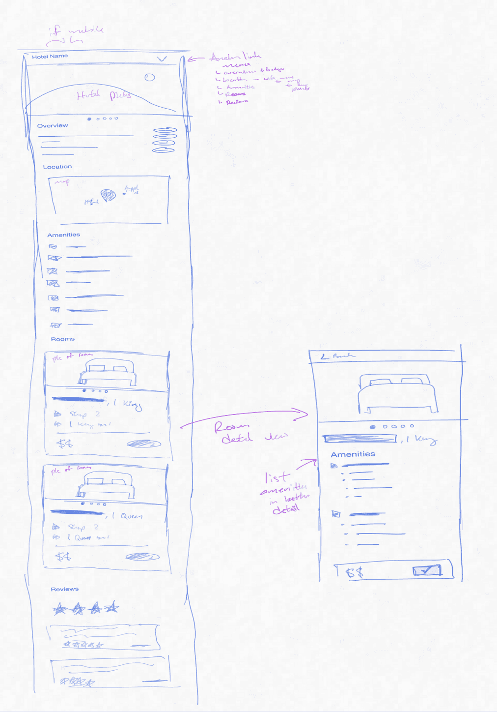 Through competitor analysis and pencil sketching, I was able to get the leadership and devs aligned on the shape the designs would take and how travelers would interact with the final product.
