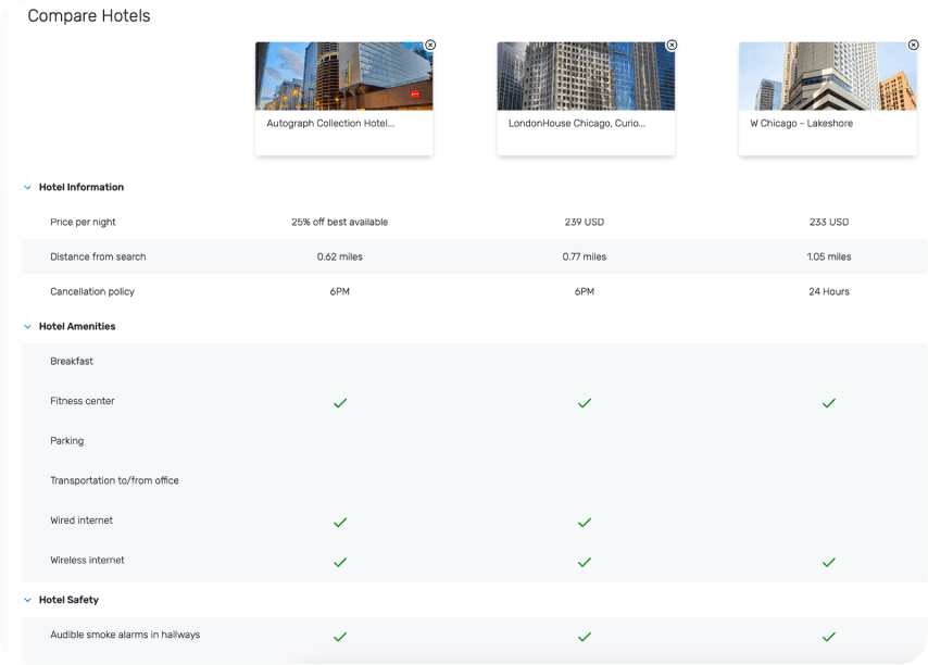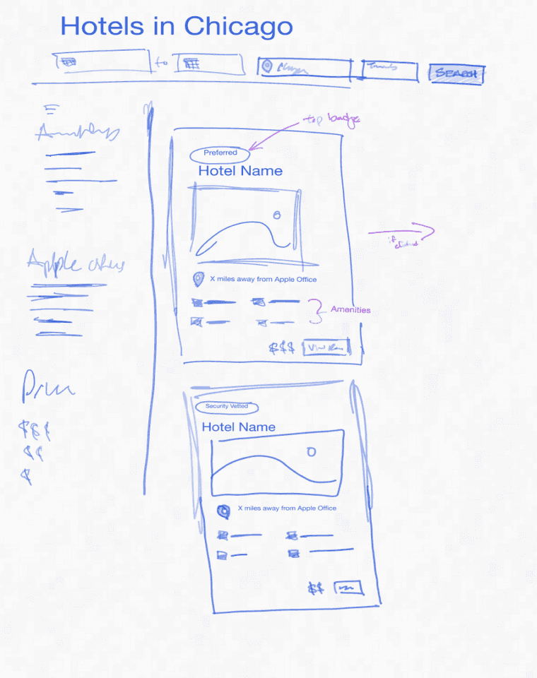 Our research found that travelers are not as price-focused as they were convenience and amenity-driven. This led us to put more weight on surfacing amenities and adding key location search (ie hotel distance to Apple Facilities).