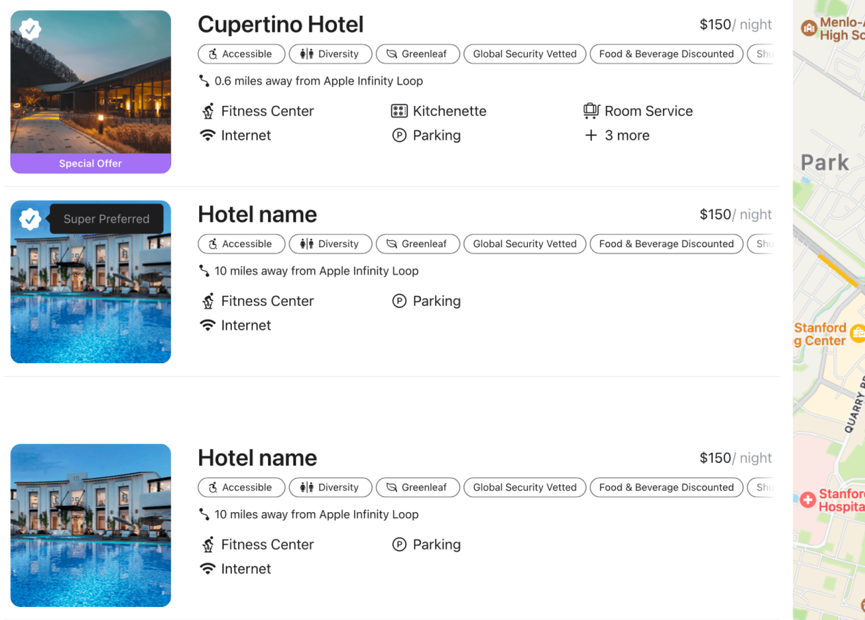The Hotel Directory is a web app managed by the Apple Travel Team to help traveling Apple employees (“Travelers”) find hotels for their stay. It highlights hotels that have a partnership with Apple to provide better rates, rooms, and services.